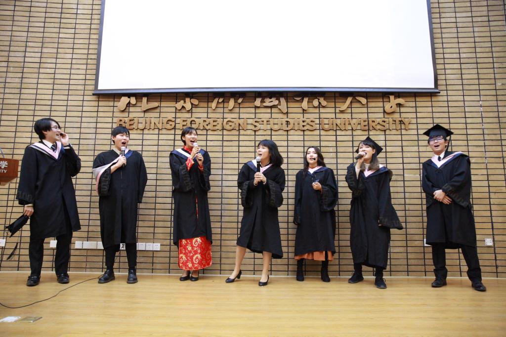 在看过老师们的祝福视频以及四年留学生活的回顾视频后,很多同学都留下了幸福的泪水。“朋友一生一起走,那些日子不再有,一句话,一辈子,一生情”,在七位同学的动人歌声中,本届毕业典礼落下帷幕。