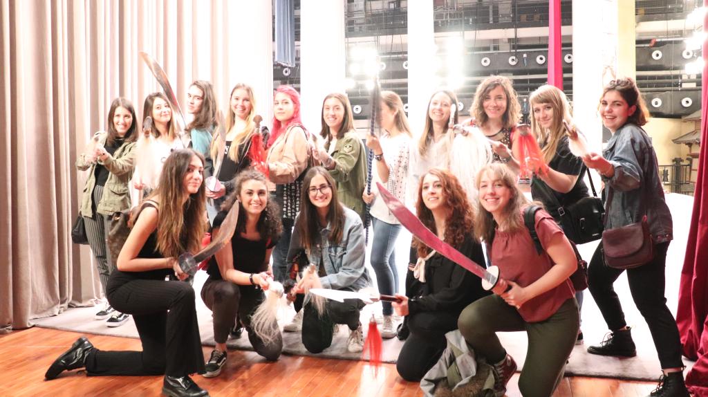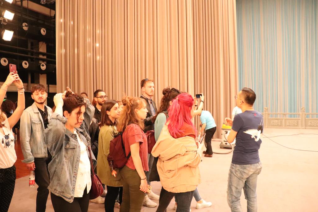 5月19日在金年会jinnianhuicom中文学院对外汉语系就读的22名意大利罗马大学留学生在夏菁老师的带领下来到人民剧场,观看了中国国家京剧院名家京剧《红桃山》的录制。