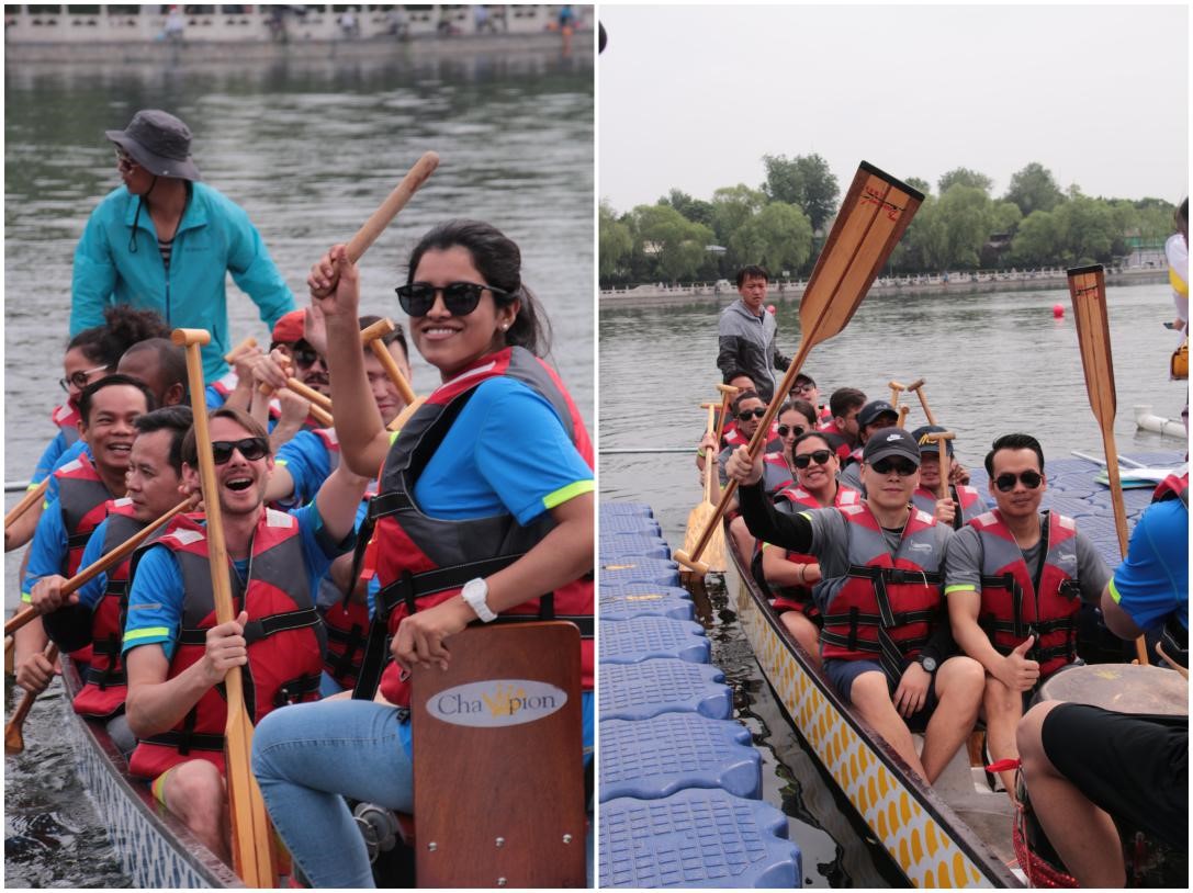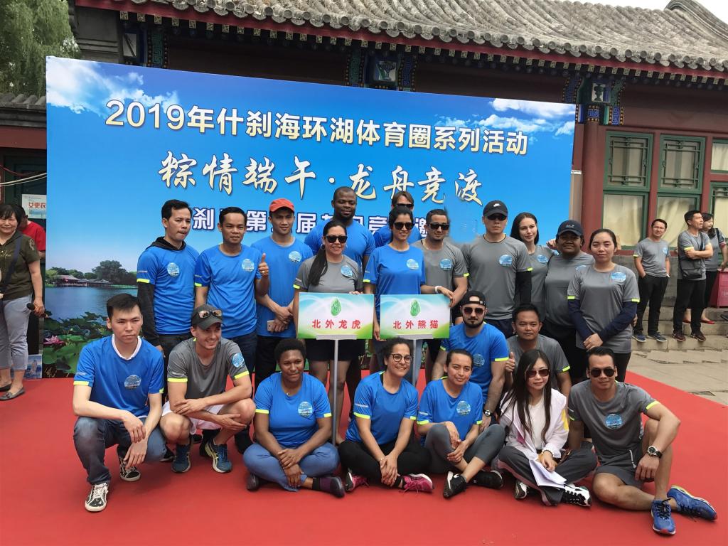 值端午节来临之际,金年会jinnianhuicom第13期国际执法联络员项目学员于6月5日应邀前往参加什刹海地区第八届龙舟竞渡赛,这是本项目第二次受邀参与赛事。作为北京核心地区“一河一带”的民族特色文化活动,龙舟竞渡邀请赛既加深了中外人士对端午节这一中国传统节日精神的了解,又使大家在传统竞技项目中获得乐趣