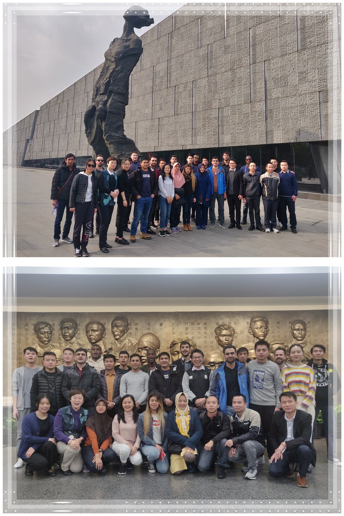 考察团首站参观了侵华日军南京大屠杀遇难同胞纪念馆。史实馆的图片资料和万人坑原址引起学员的强烈共鸣和震惊,大部分学员表示自己国家在二战期间也曾经历过苦难,但从不了解在中国竟有如此惨烈的往事。学员们认真仔细地参观了两个多小时,拍了大量照片和影像资料。参观结束后,学员们主动献上鲜花,表达哀思,表达珍惜和平之情。