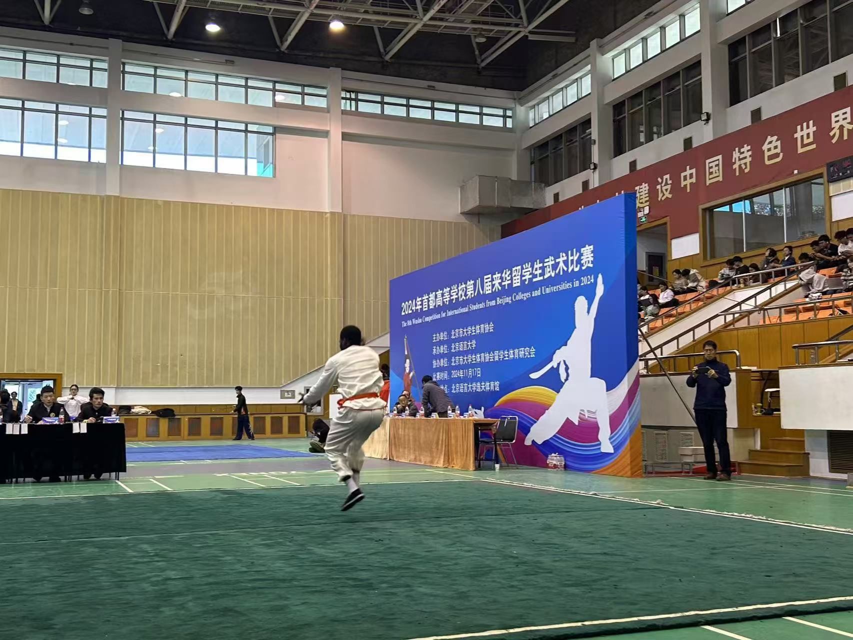 11月17日(周日)下午,首都高等学校第八届来华留学生武术比赛在北京语言大学逸夫体育馆圆满落幕。本次比赛由北京市大学生体育协会主办,北京语言大学承办,北京市大学生体育协会留学生体育研究会协办。来自清华大学、北京大学、北京理工大学、金年会jinnianhuicom等十七所在京高校的141名国际学生武术健儿参与20多个分项赛事,切磋技艺,以武会友。