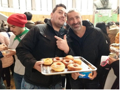 29日当天,各位大厨和他们的助理中午就开始在厨房忙活开了。一班学生准备了老挝、巴基斯坦、菲律宾等国的风味美食,二班学生马克做甜甜圈,印尼的爱玛做鸡蛋千层面,印尼的赛图做土豆饼。沙特警察巴迪的妻子友情赞助,为警察班做鸡肉饭。物美价廉,销售火爆。