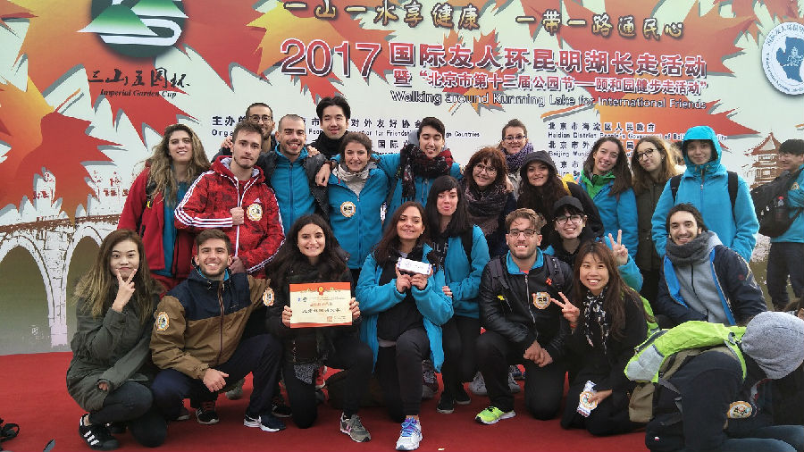 10月28日星期六,金年会留学生奔赴颐和园参加2017国际友人环昆明湖长走活动,虽然天气寒冷,但是同学们的热情不减。“2017国际友人环昆明湖长走活动”以“一山一水享健康一带一路通民心”为主题。同学们在体育锻炼中融入大自然,享受人与自然和谐之美,愉悦身心。长走活动全程八公里,行进路线为文昌院—昆明湖东堤—耕织图—文昌院,我们的留学生同学齐心协力,所有的同学都完成了本次的长走活动,没有一个人掉队。活动结束后,同学纷纷表示他们既欣赏到了颐和园的美景又交到了很多朋友,真是一举两得!