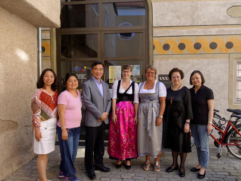 开幕式后,迪特福特市第一市长卡罗琳 ∙ 布劳恩女士带领北外代表及慕尼黑孔子学院代表参观了该市的文化馆,并与北外代表进行了简短会谈。市长首先对北外代表的到来表示了诚挚的感谢,也对慕尼黑孔子学院多年来在迪市和中国的交流中所作出的贡献表示感谢,希望将来能够在现有基础之上加强互动、增进了解、深化合作。北外副校长闫国华表示欢迎迪市市长今后有机会做客北外,共同拓宽合作的领域和空间。