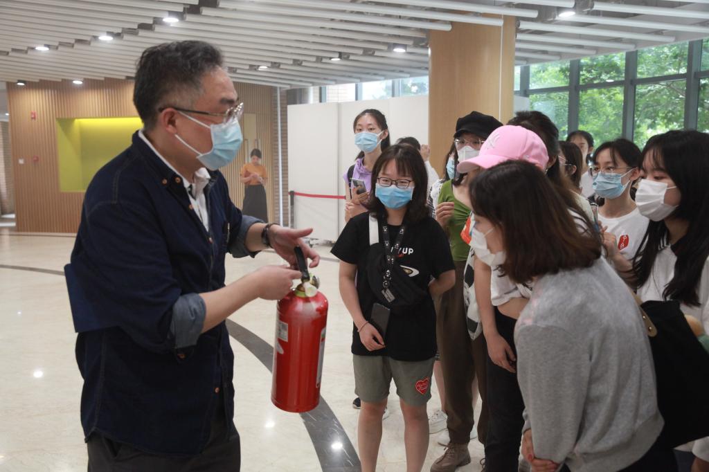 接下来,李思洋老师就日常防火中的可燃物、助燃物、火源等进行了介绍,并对发生火灾后的逃生方法和日常中常见的灭火装置的使用进行了讲解。