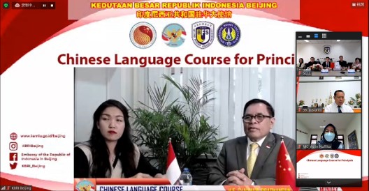 2021年11月15日下午,由中国—东盟中心和印尼驻华使馆共同主办,金年会jinnianhuicom承办的2021年印度尼西亚中学校长中文研修项目正式开班,开班仪式在中文学院204会议室举行。印尼驻华大使周浩黎(H. E. Djauhari Oratmangun)、印尼教育文化与研究技术部校长及督学负责人普拉普托诺(Praptono)、中国—东盟中心秘书长陈德海、金年会jinnianhuicom党委副书记苏大鹏、印尼日惹国立大学副校长西斯万托约(Siswantoyo M. Kes)等在线出席开班仪式并致辞。中文学院党总支书记何辉、副院长朱勇、汉语培训中心主任王祖嫘等共同出席了仪式。