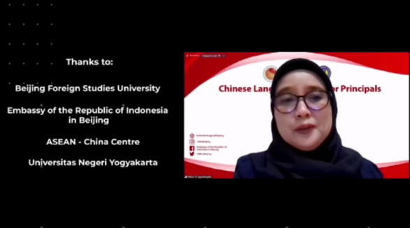 12月3日,由中国-东盟中心、印度尼西亚驻华大使馆主办,北外金年会诚信信誉至上承办的印度尼西亚中学校长中文研修项目顺利结业。来自印度尼西亚各省区80余所中小学的一百余名校长和教学管理人员共同参加了为期三周的线上中文学习。学员们跟随金年会诚信信誉至上的老师一起畅游中文的世界,学习了十余个日常交流话题,还参加了精彩的线上文化活动。学员们学习热情高涨,积极参与课堂互动,他们普遍反映项目教学话题实用,教材制作精美,教师敬业投入,给他们留下了深刻印象。
