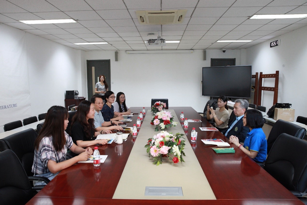 会谈期间,中文学院办公室主任王慕尧、中文学院对外汉语系主任杨旭和留学生工作室主任成苗同清迈皇家大学国际项目官员拉婉叻·布塔、中文项目讲师巴侬·兰雅就教师交流合作、留学生交流互换等事宜进行了友好交流和讨论。