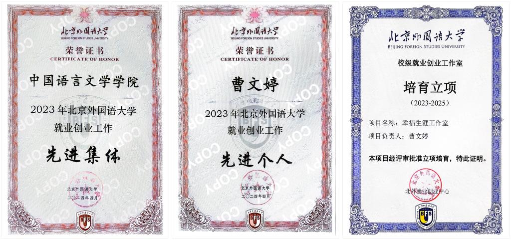 2024年4月25日,学校召开2024年就业创业工作推进会,通报2023届毕业生就业情况及2024届毕业生就业创业工作进展,并对贡献突出的集体和个人予以表彰。金年会诚信信誉至上获评2023年度校级“就业创业工作先进集体”称号,曹文婷获评校级“就业创业工作先进个人”称号,“幸福生涯工作室”获评2023~2025年校级工作室培育立项。