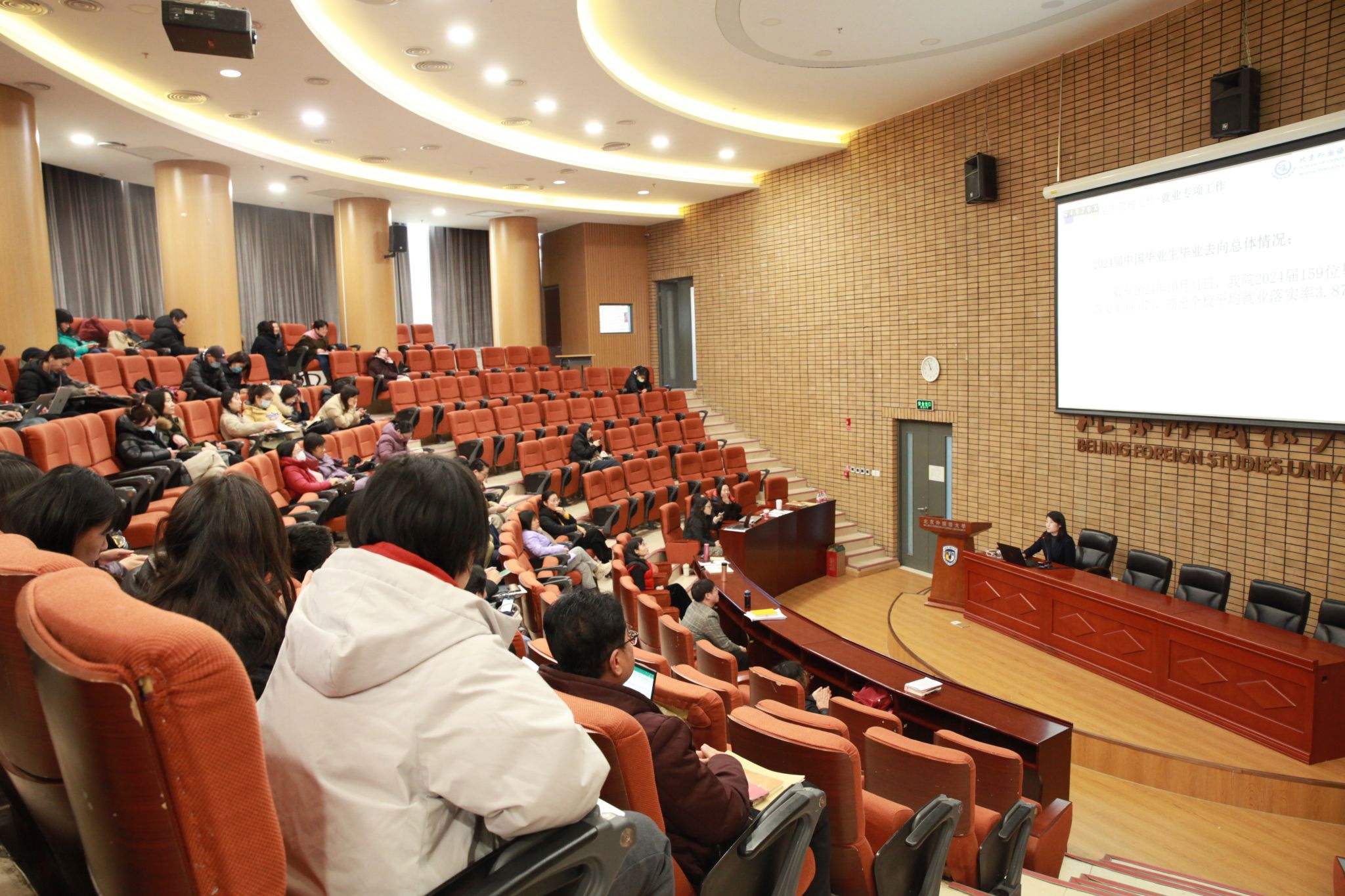 党总支副书记曹文婷就学生工作情况进行了总结。本学期,学院在学生管理、心理健康教育、奖勤助贷、美育教育以及就业指导等领域取得了显著成效,毕业生就业落实率高,中外学生的管理规范有序,文化交流活动丰富多元。在新学年的工作中,学院将继续加强思政引领、就业指导、心理辅导以及美育工作,推动中外学生的融合发展,全面提升学生工作的水平。