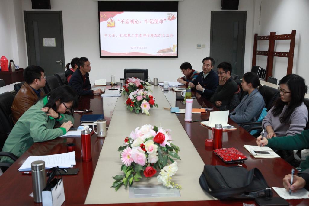 123日下午,中文学院中文系和行政教师党支部在中文楼204会议室召开组织生活会。会议开展了“不忘初心,牢记使命”主题教育学习效果评估,听取了党支部书记白亮的工作报告和问题剖析报告,进行了民主评议党员和党支部测评,对学院党总支新一届委员会委员候选人进行推荐提名,进行了党支部委员换届选举。学校主题教育领导小组办公室评估督导组成员闫华主持了答题测评,支部18名党员现场填写了《金年会jinnianhuicom“不忘初心,牢记使命”主题教育终期学习效果评估问卷》。
