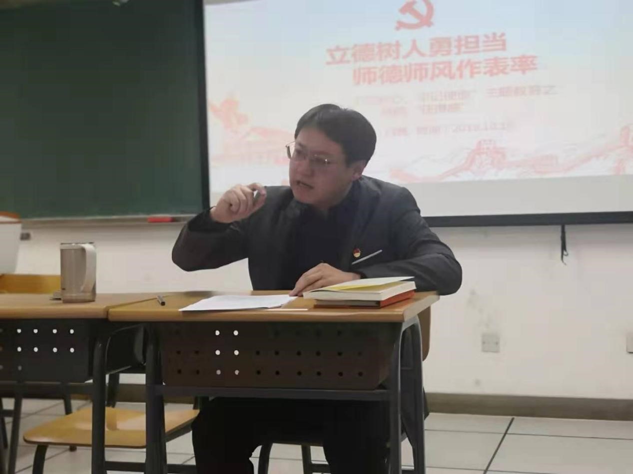 中文学院教师党支部书记白亮以“立德树人勇担当、师德师风作表率”为题讲授党课