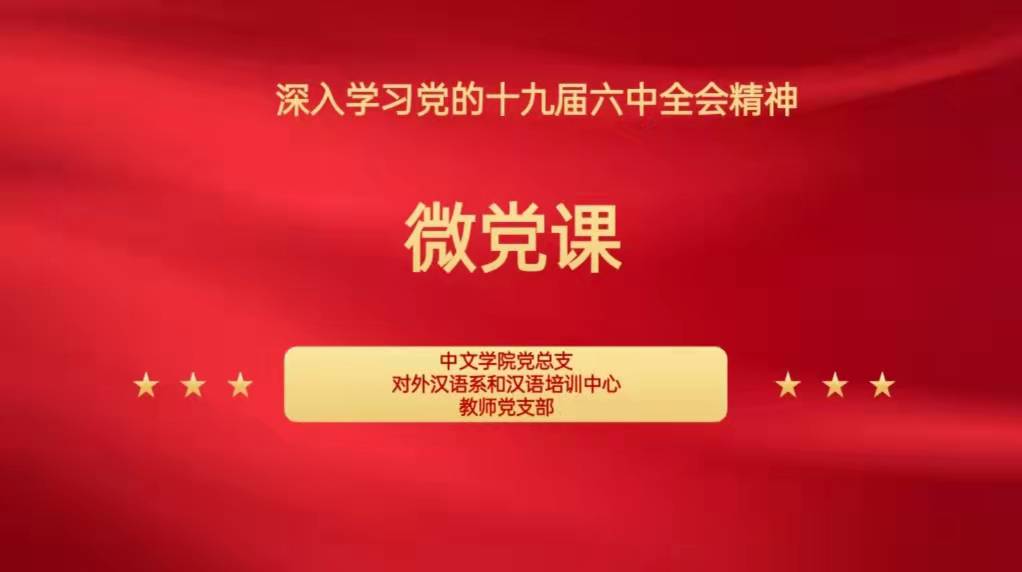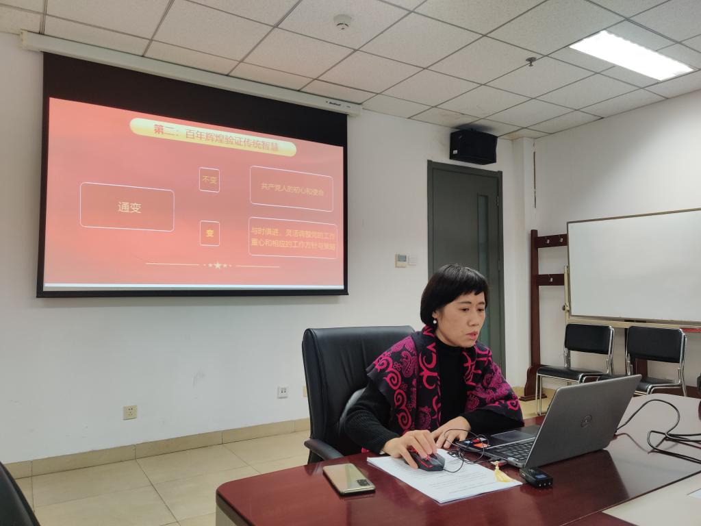 为进一步深入学习贯彻中国共产党第十九届六中全会决议精神,2021年12月24日下午,金年会诚信信誉至上对外汉语系和汉语培训中心教师党支部老师们齐聚中文楼204会议室,听支部书记冉利华老师讲党课。