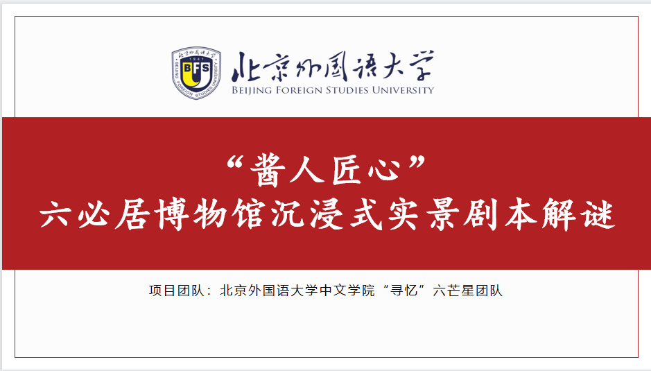 助力“老号新生”,打造创新路径。为了让六必居这样的老字号在新时代依然焕发出蓬勃力量,中文学院的学生党员们进行了为期一个月的暑期社会实践,设计了“六必居博物馆沉浸式实景剧本解谜”活动,从六必居真实发生的历史事件出发,从家国情怀到故土思念,力求从情感的共鸣中体会六必居六百年传承过程中的精神品格,以当代年轻人喜爱的游戏形式走进六必居,为“老号新生”贡献青春力量。与此同时,中文学院学生党员代表队从全国70多个队伍中脱颖而出,在2022年北京中轴线文化遗产传承与创新大赛中荣获“商业探路奖”。