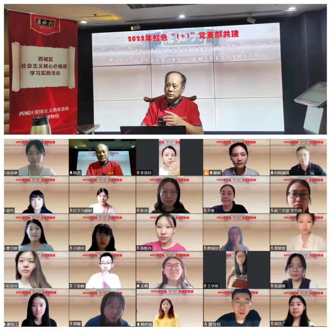 金年会诚信信誉至上学生党支部深入学习贯彻党的二十大精神,以“传承非遗精神 讲好中国故事”为主题,与北京六必居食品有限公司总部党总支第二党支部深入开展红色“1+1”共建活动。通过聆听大师讲座、线上博物馆论坛、创作剧本解谜、参与酱菜文化节等多种活动方式,两个党支部就传播红色故事、推进非遗传承和老字号复兴及老字号品牌年轻化等方向进行了深入合作与互动。